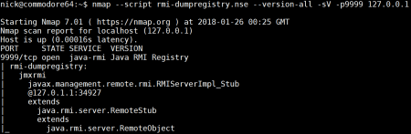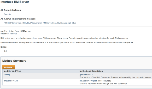 Ignoring horrifically outdated/configured versions of Java where RMI is trivially exploitable with Metasploit, Braden Thomas (@drspringfield) did some research into exploiting the JMX RMI service back in 2013 and came up with a way to achieve remote code execution by instructing the service to load and execute code from a remote server that is under the attacker’s control. One of the recommended mitigations was to ensure that the JMX service is password protected.
